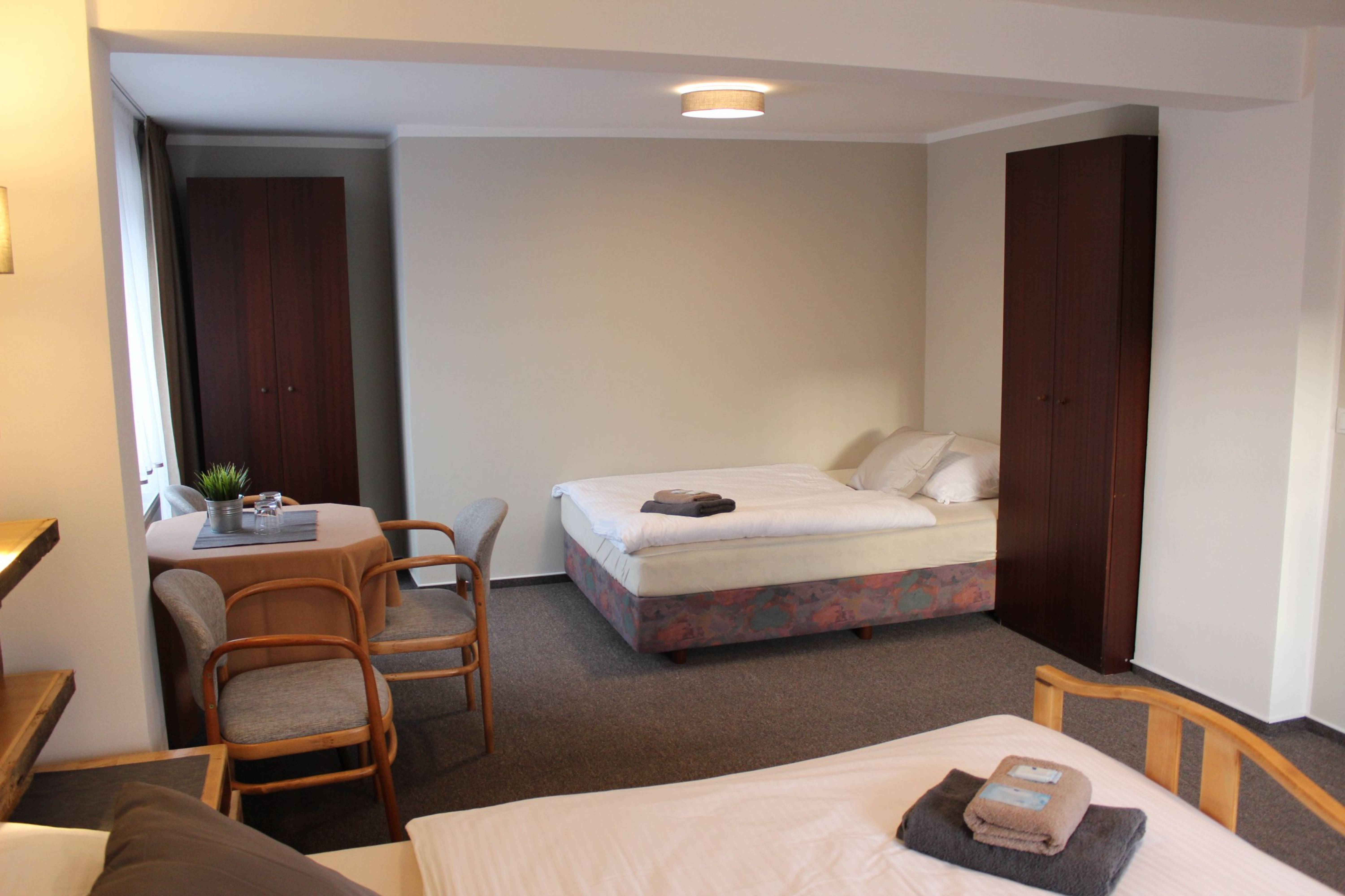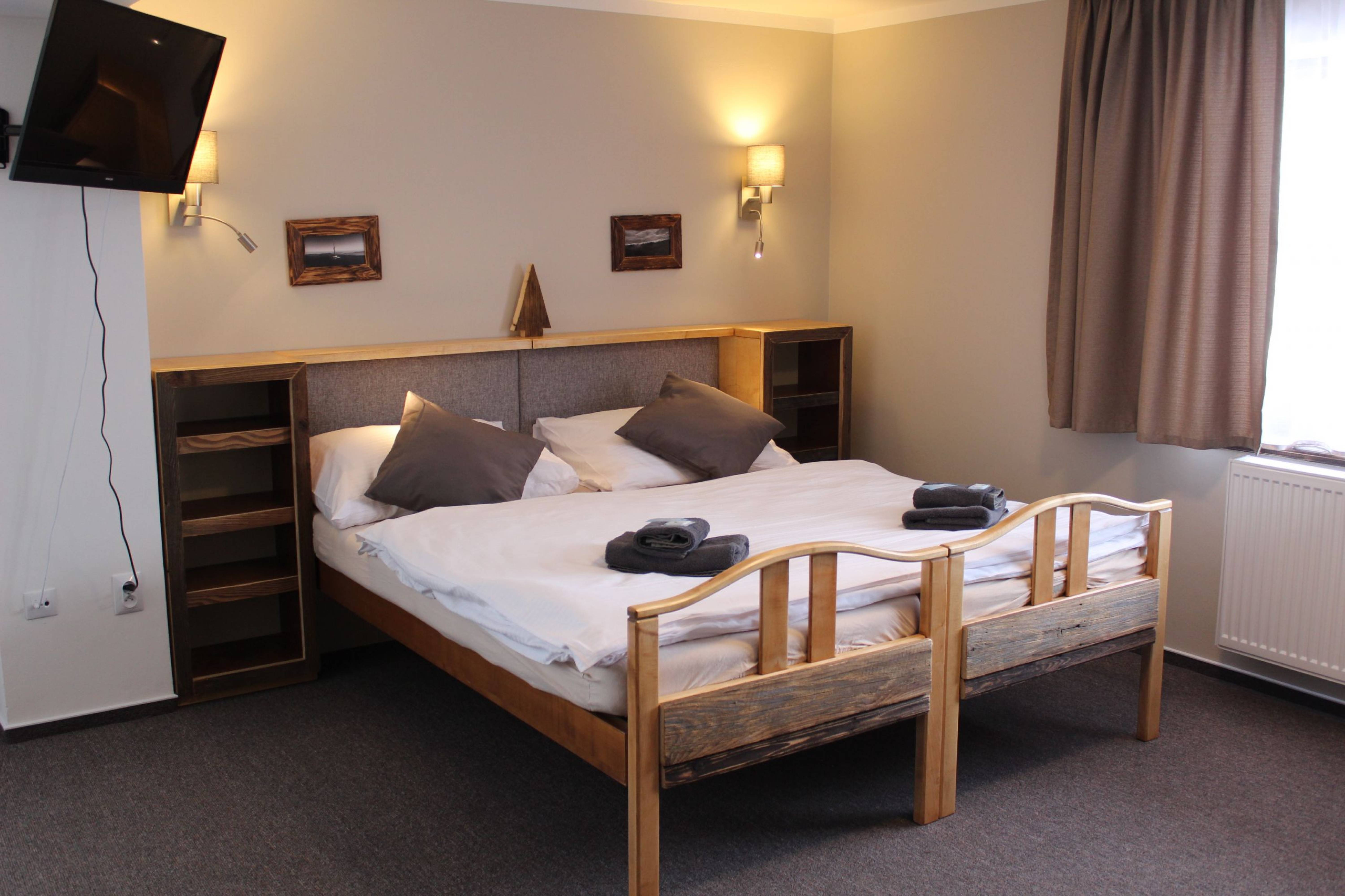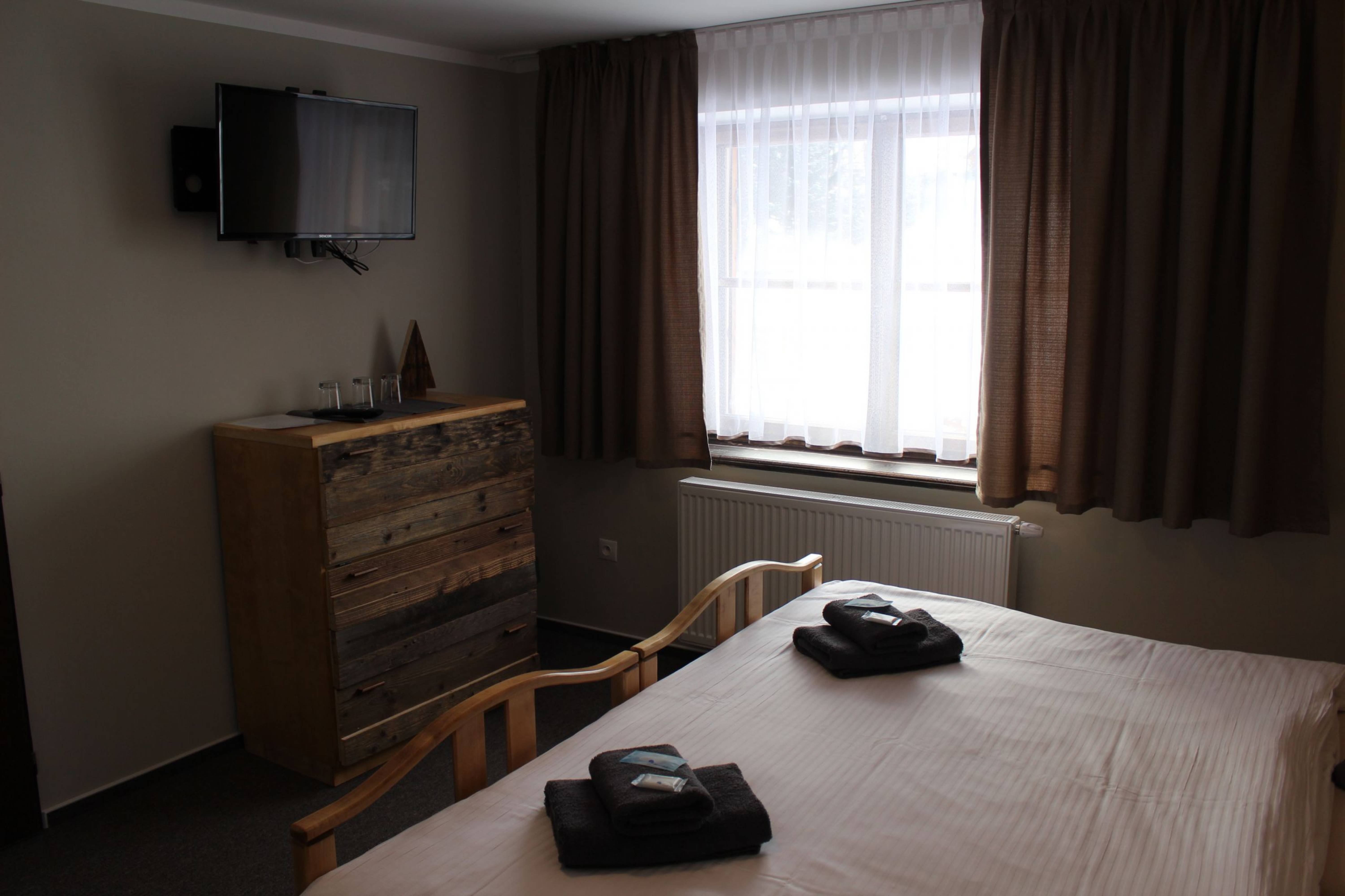 Ubytování v JeseníkuPro návštěvníky našeho hotelu máme připraveno 16 nově zrekonstruovaných pokojů s celkovou kapacitou 34 lůžek. V našem hotýlku najdete jednolůžkové, dvoulůžkové a třílůžkové pokoje, pokoje typu Deluxe, které mají navíc balkon, nebo terasu. Součástí každého pokoje je samostatná koupelna se sprchovým koutem a toaletou, TV a mini lednicí. Pokoje Deluxe, Superior a Comfort jsou navíc doplněny kávovým / čajovým setem. Po dobu pobytu je všem našim hostům k dispozici wifi připojení zdarma. K dispozici také máme prostorné parkoviště přímo u hotelu a pro úschovu vašich kol a lyží máme uzamykatelnou kolárnu/lyžárnu. Rodiny s dětmi jistě uvítají prostornou zahradu s dětským hřištěm, pískovištěm a trampolínou.